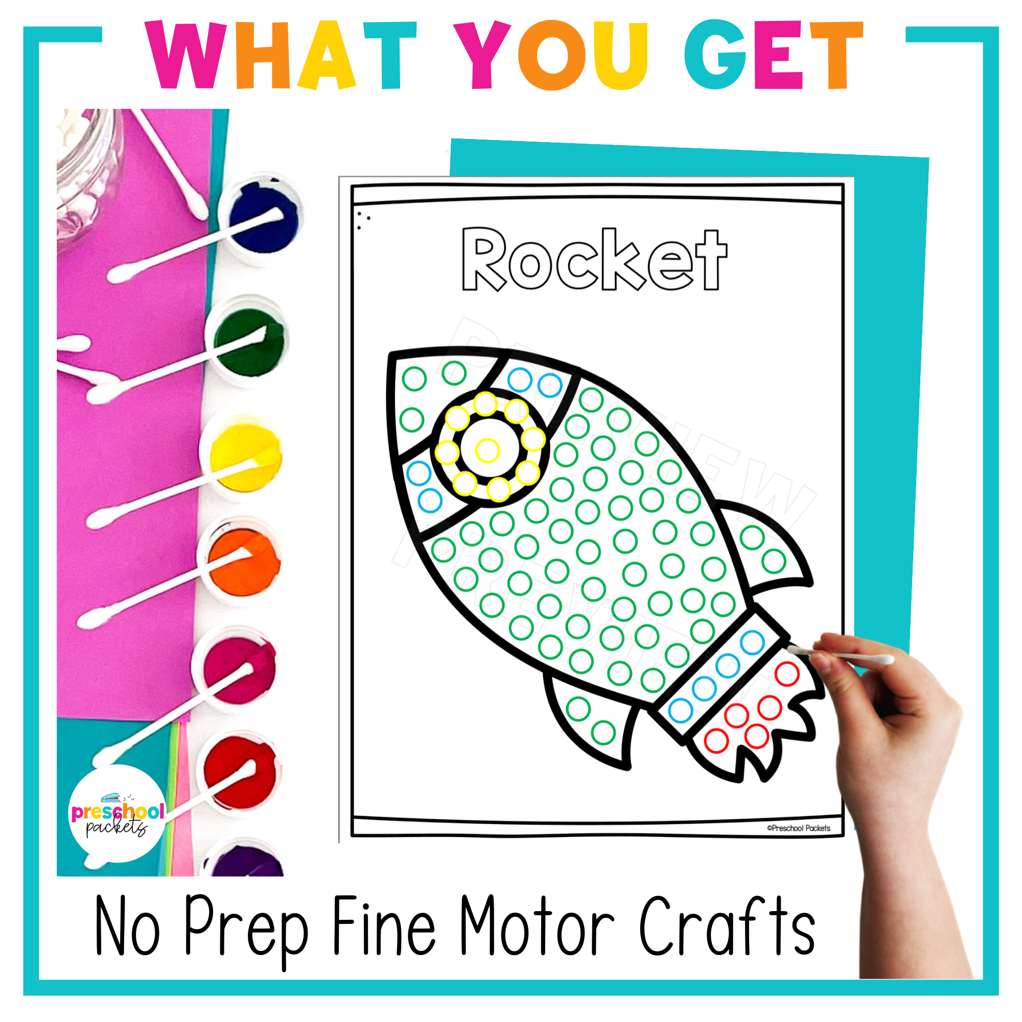 Looking for an easy NO PREP craft for your Space Themed Activities? With just a Q Tip and some paint, children can engage in an easy and creative fine motor activity! This set includes a total of 15 Space Themed Crafts.