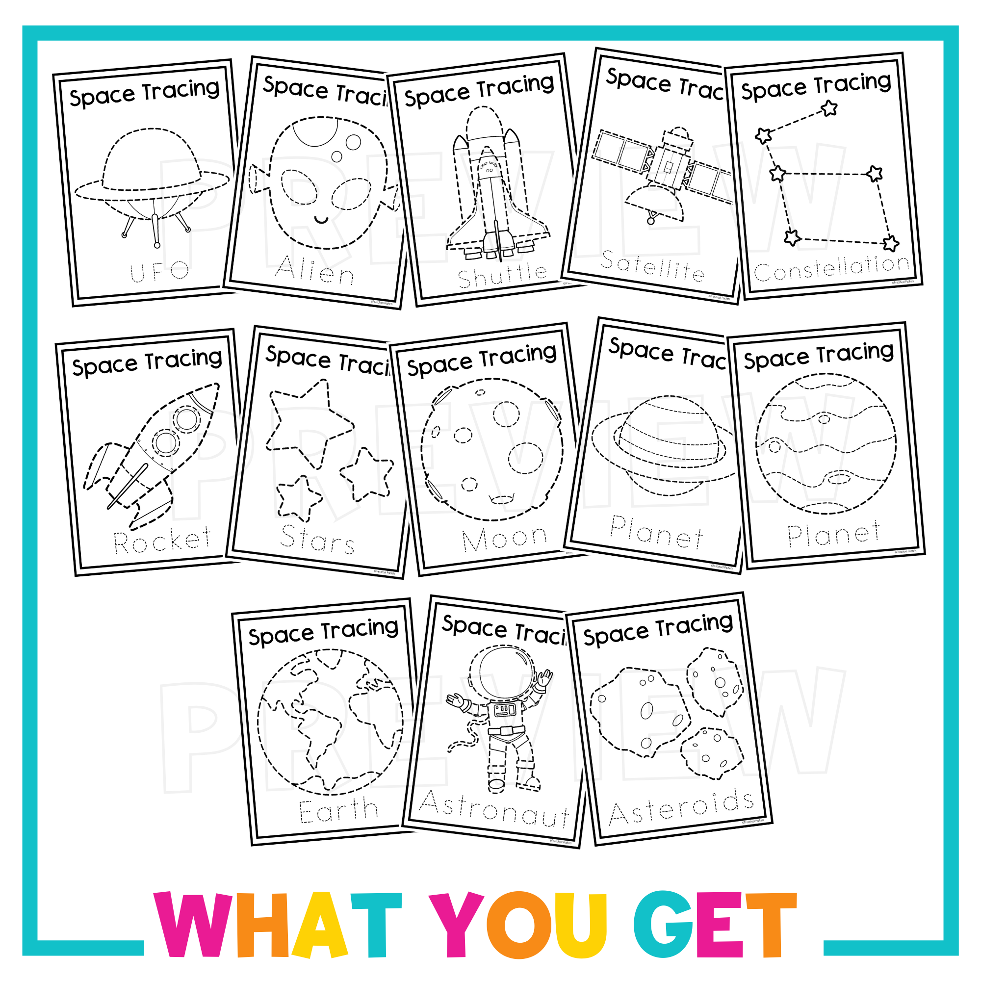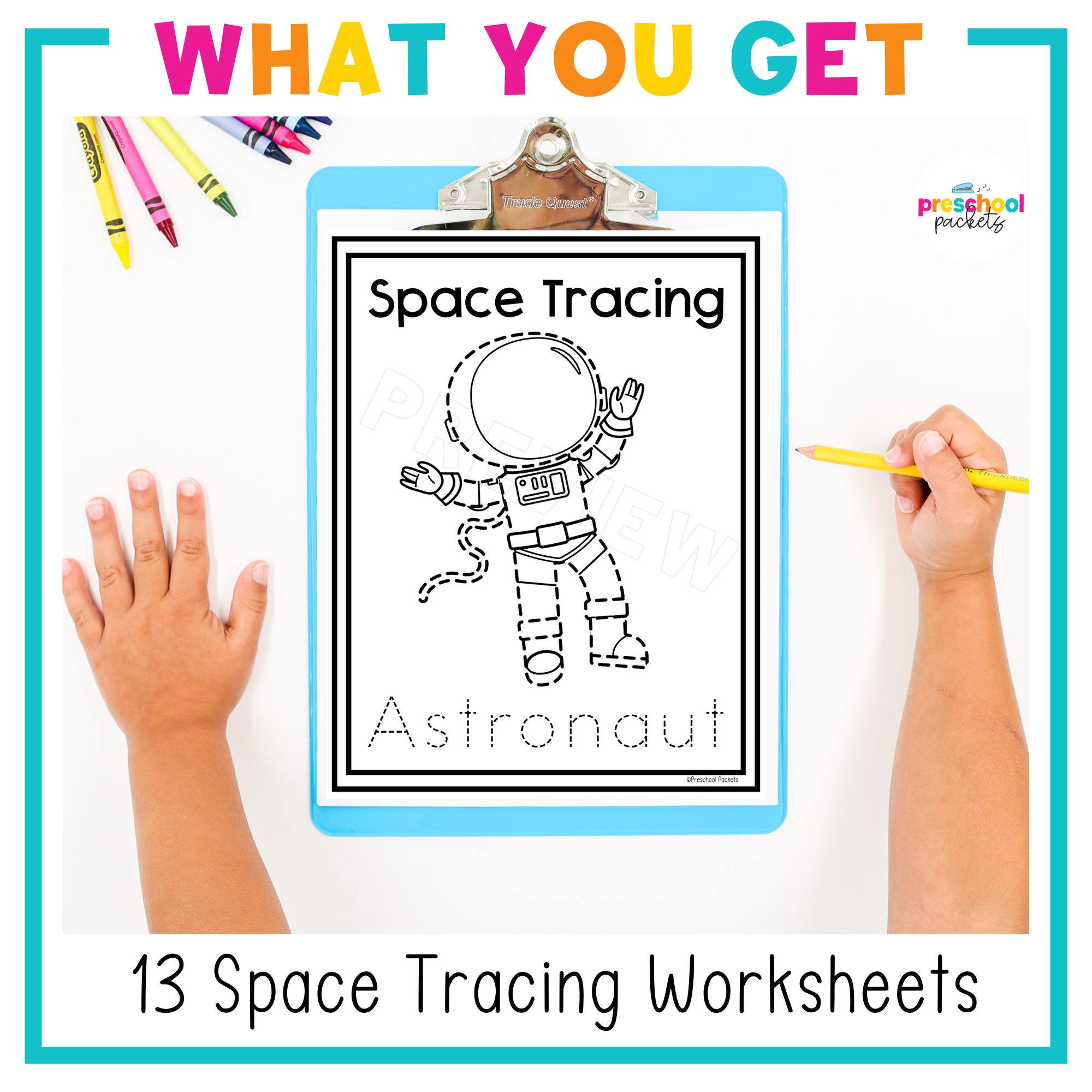 Space Preschool Tracing Worksheets - a no-prep solution for developing fine motor skills and pre-handwriting proficiency in your little learners!