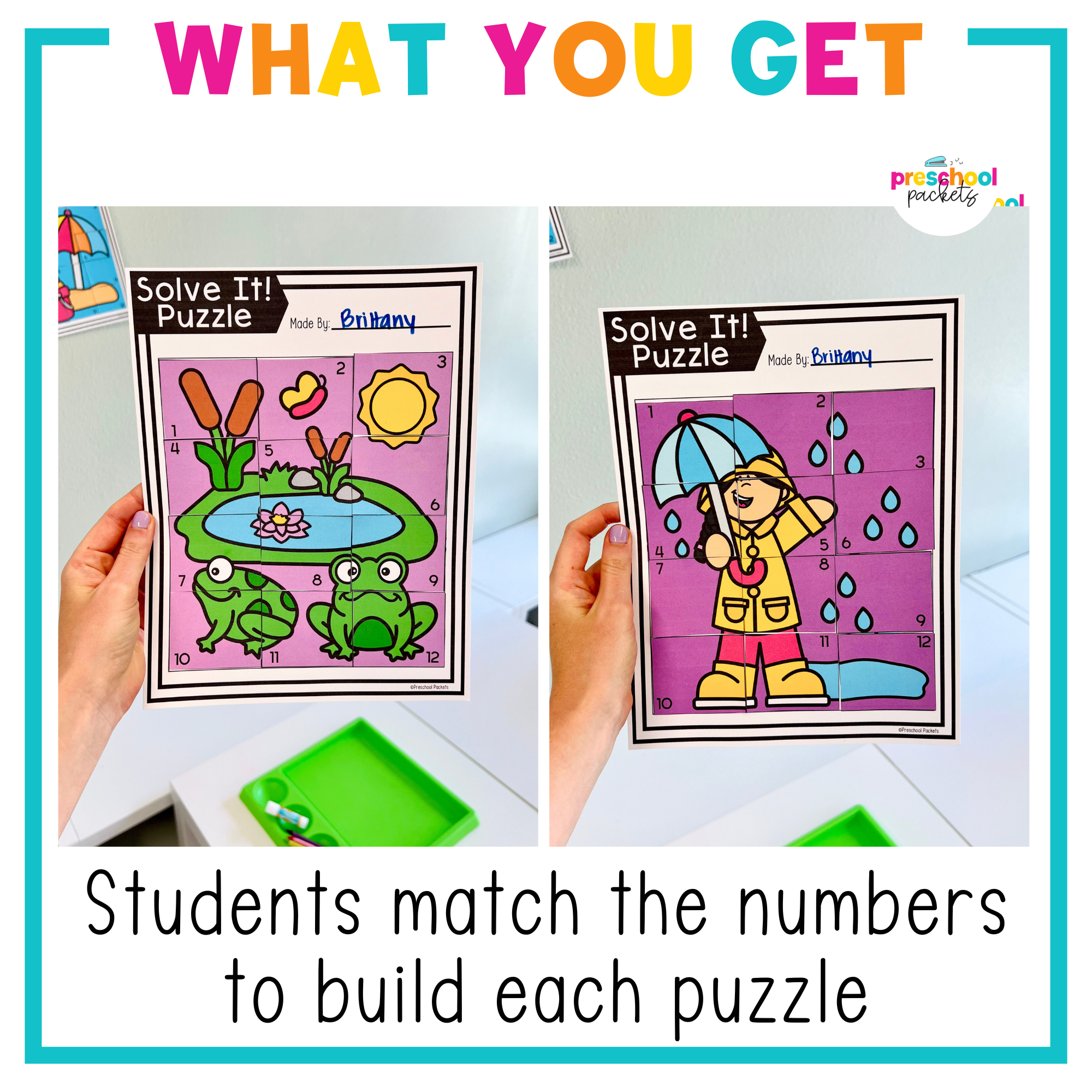 Students can work on fine motor skills by cutting and pasting each puzzle piece, or you can laminate them for repeated use! Plus work on math skills by matching each number to build the puzzle.