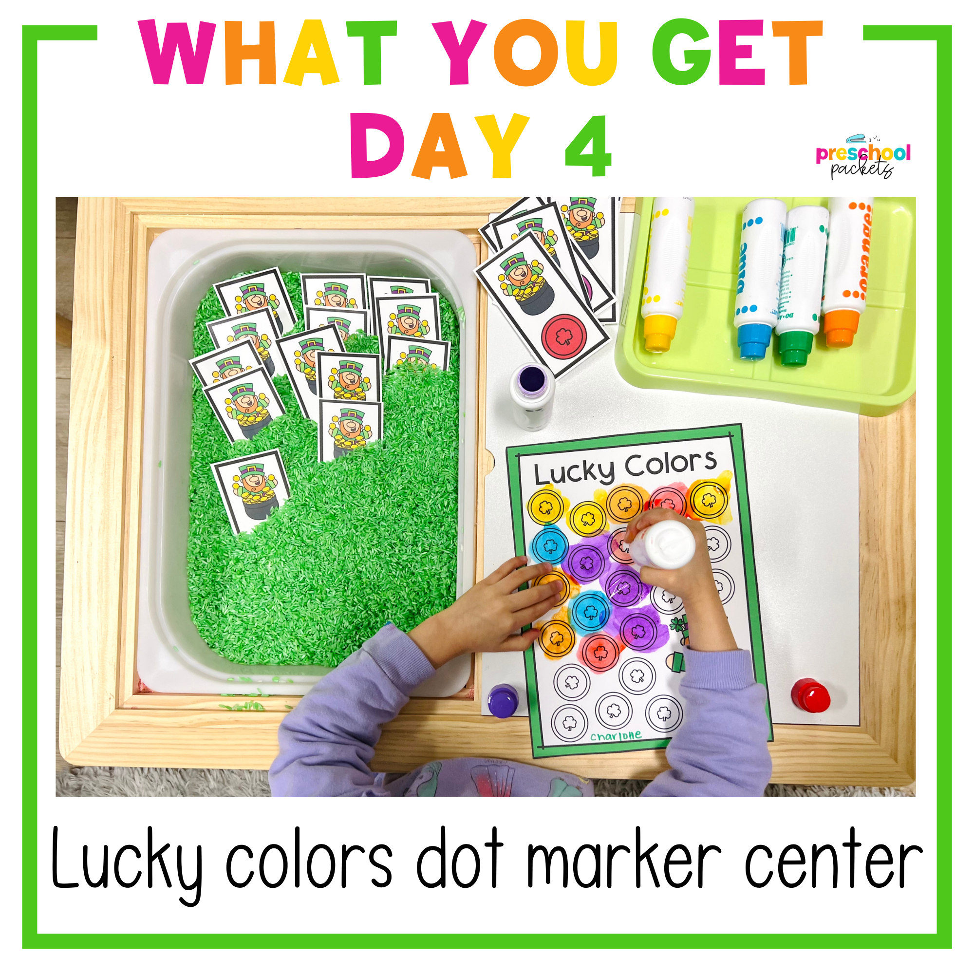 - Lucky Colors: Students can work on their color recognition by using dot markers to fill up their lucky color sheet.