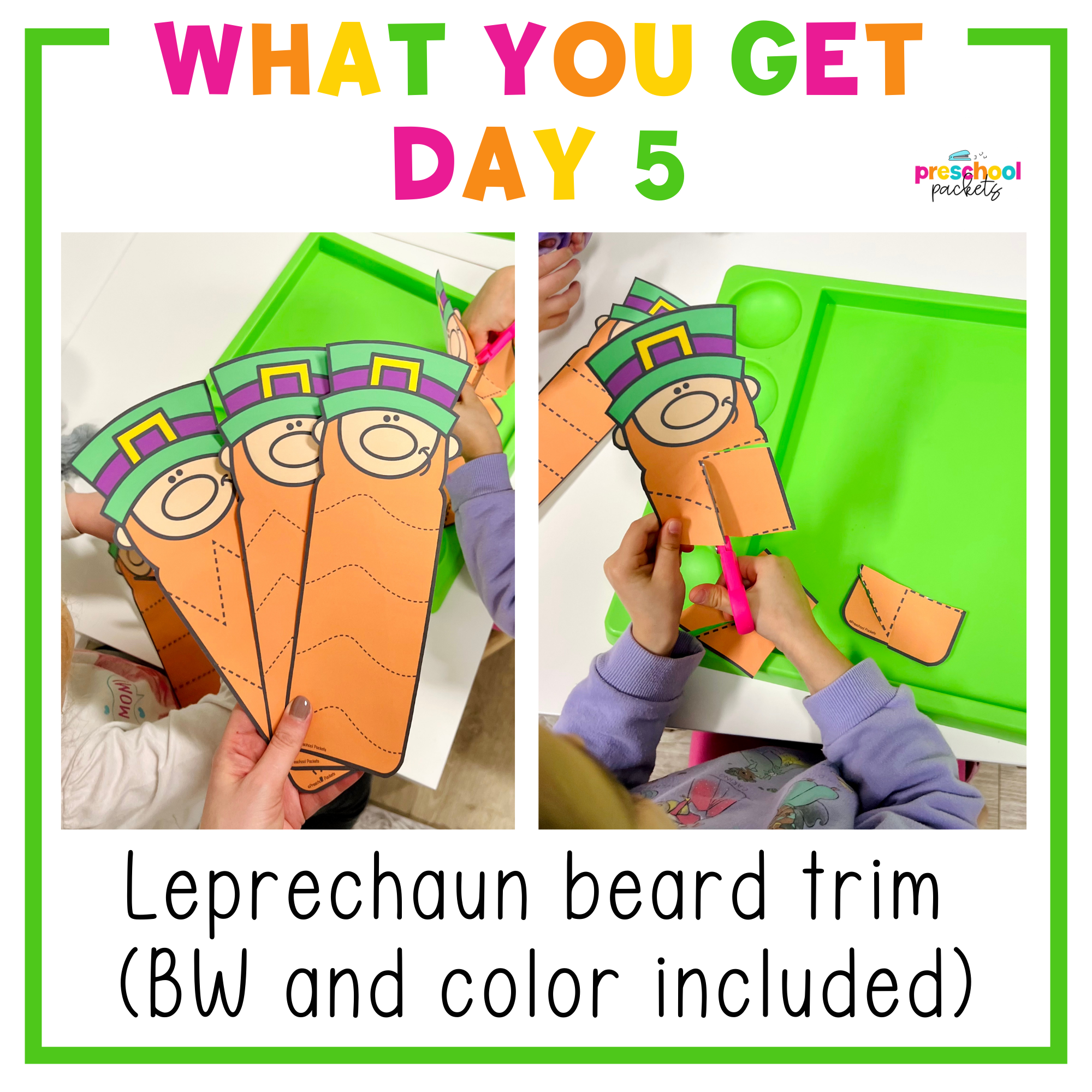 - Leprechaun Beard Trim: Work on fine motor and scissor skills by giving the leprechaun a beard trim. 10 cards provided in BW and color.