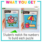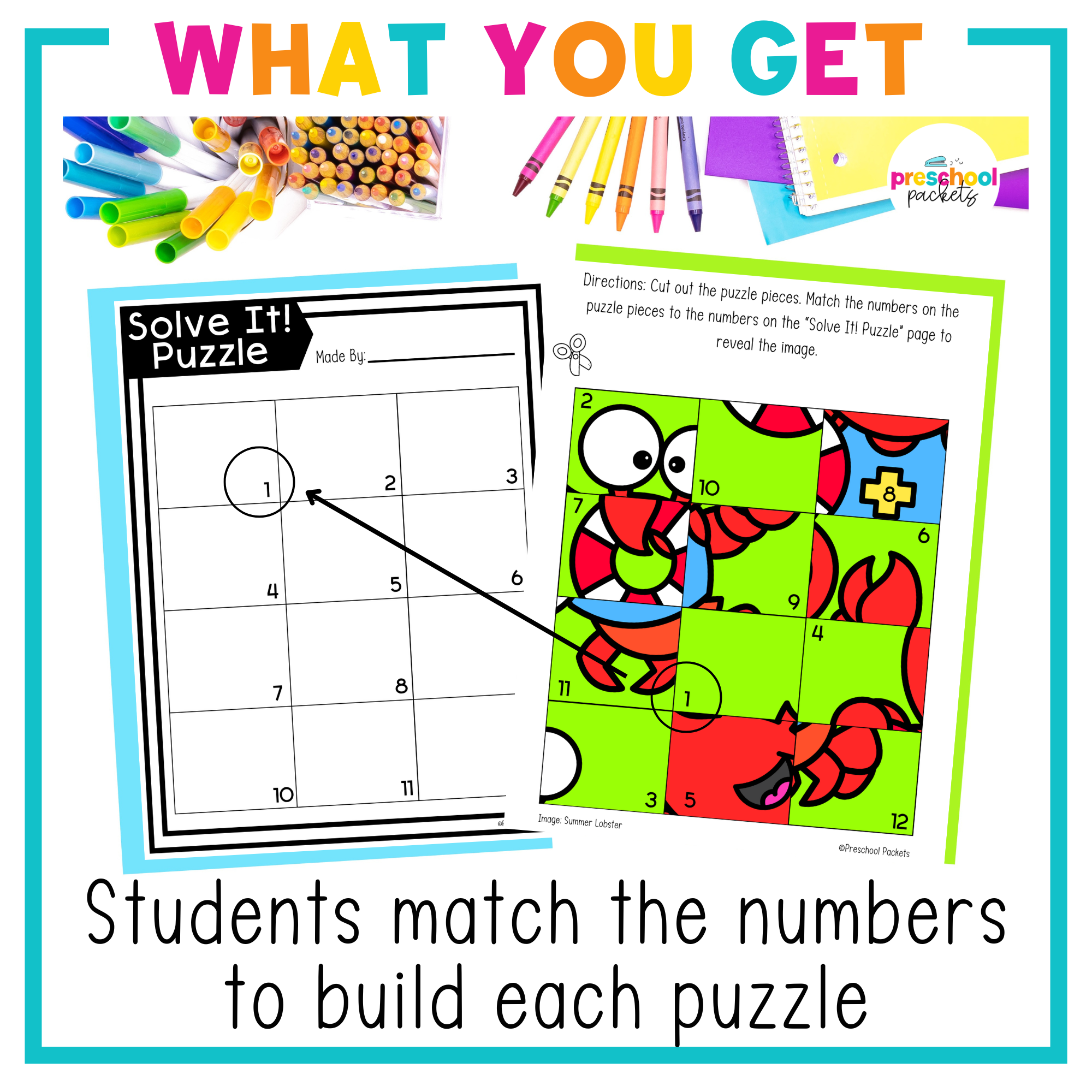 Students can work on fine motor skills by cutting and pasting each puzzle piece, or you can laminate them for repeated use! Plus work on math skills by matching each number to build the puzzle.