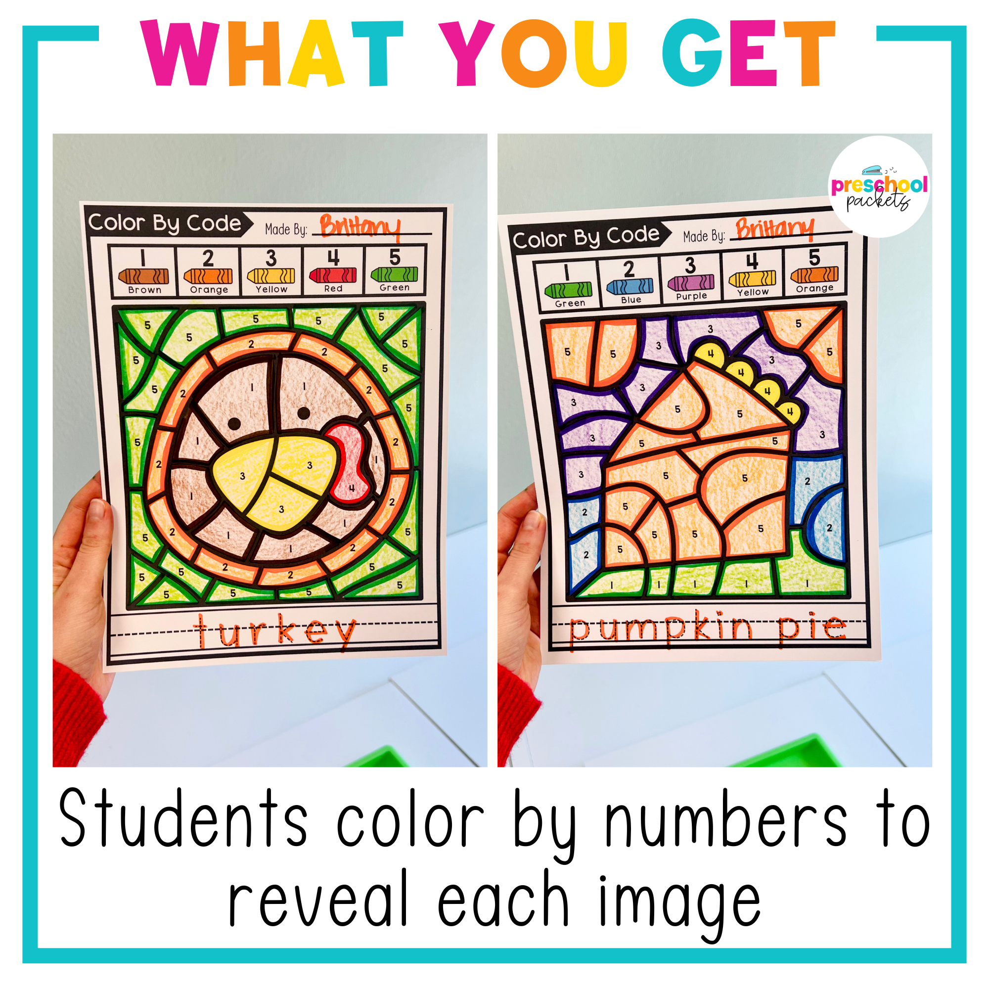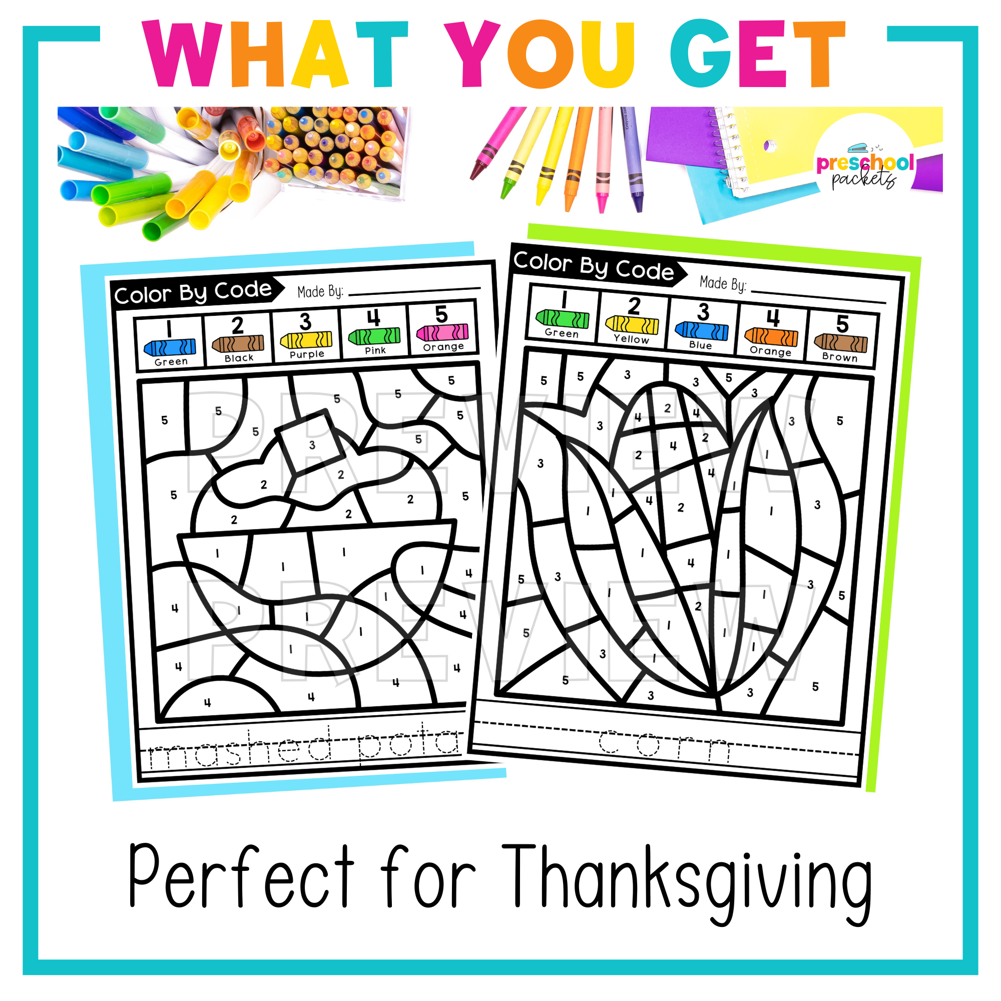 Thanksgiving Color By Code for Preschool and Kindergarten