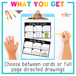 Choose between directed drawing sheets or directed drawing cards and use blank paper to fit your classroom needs.