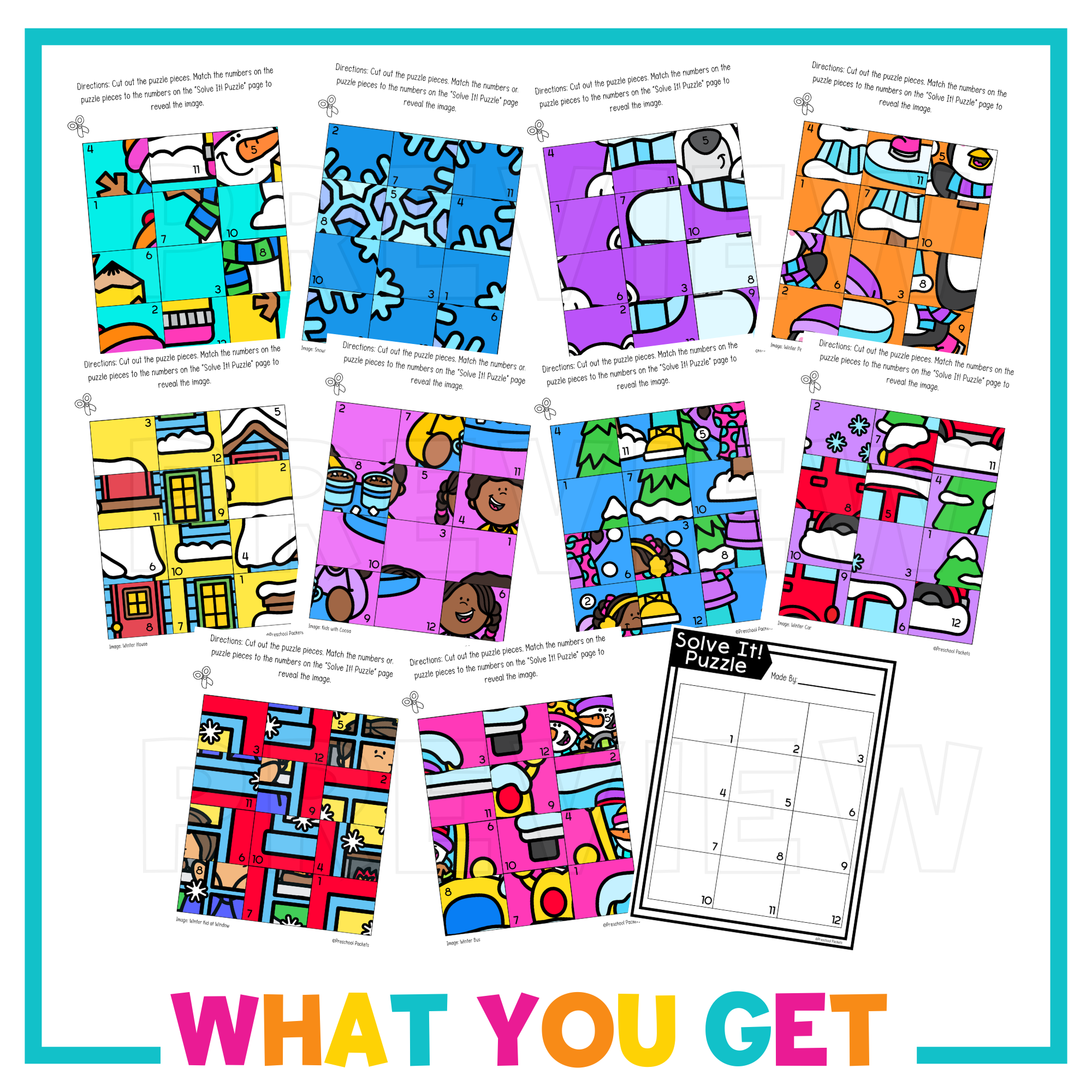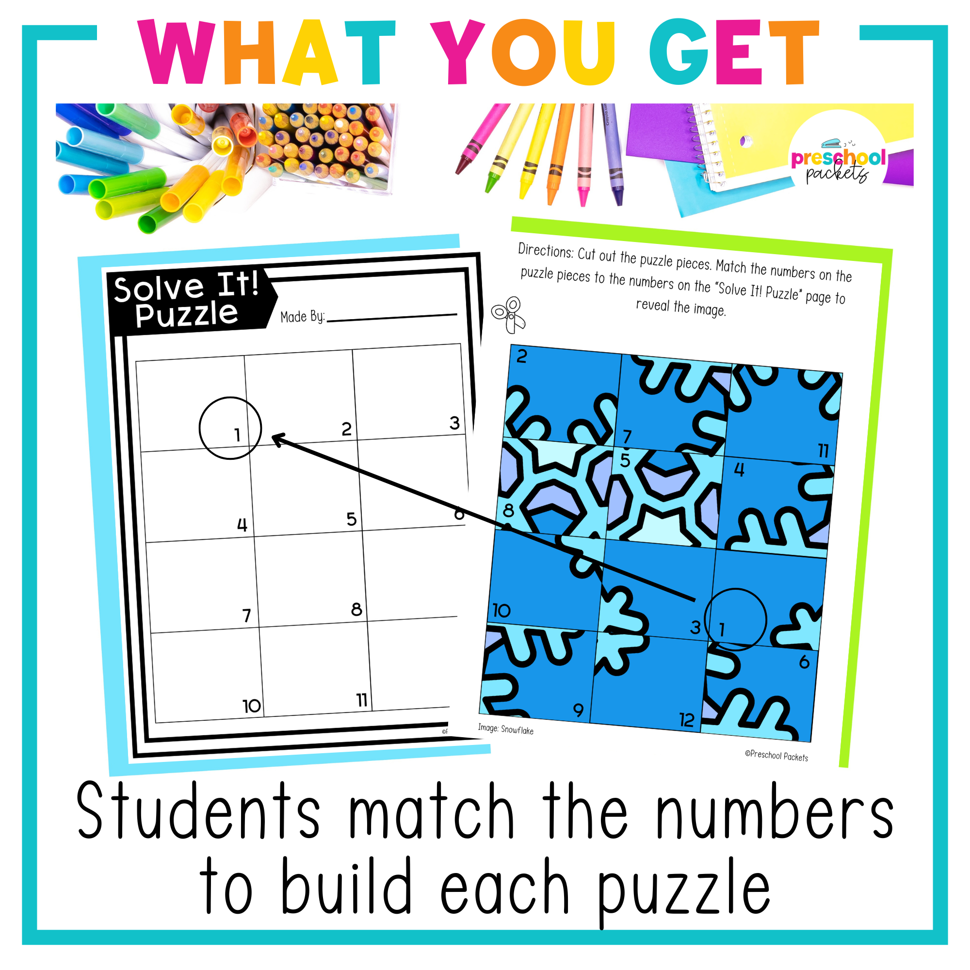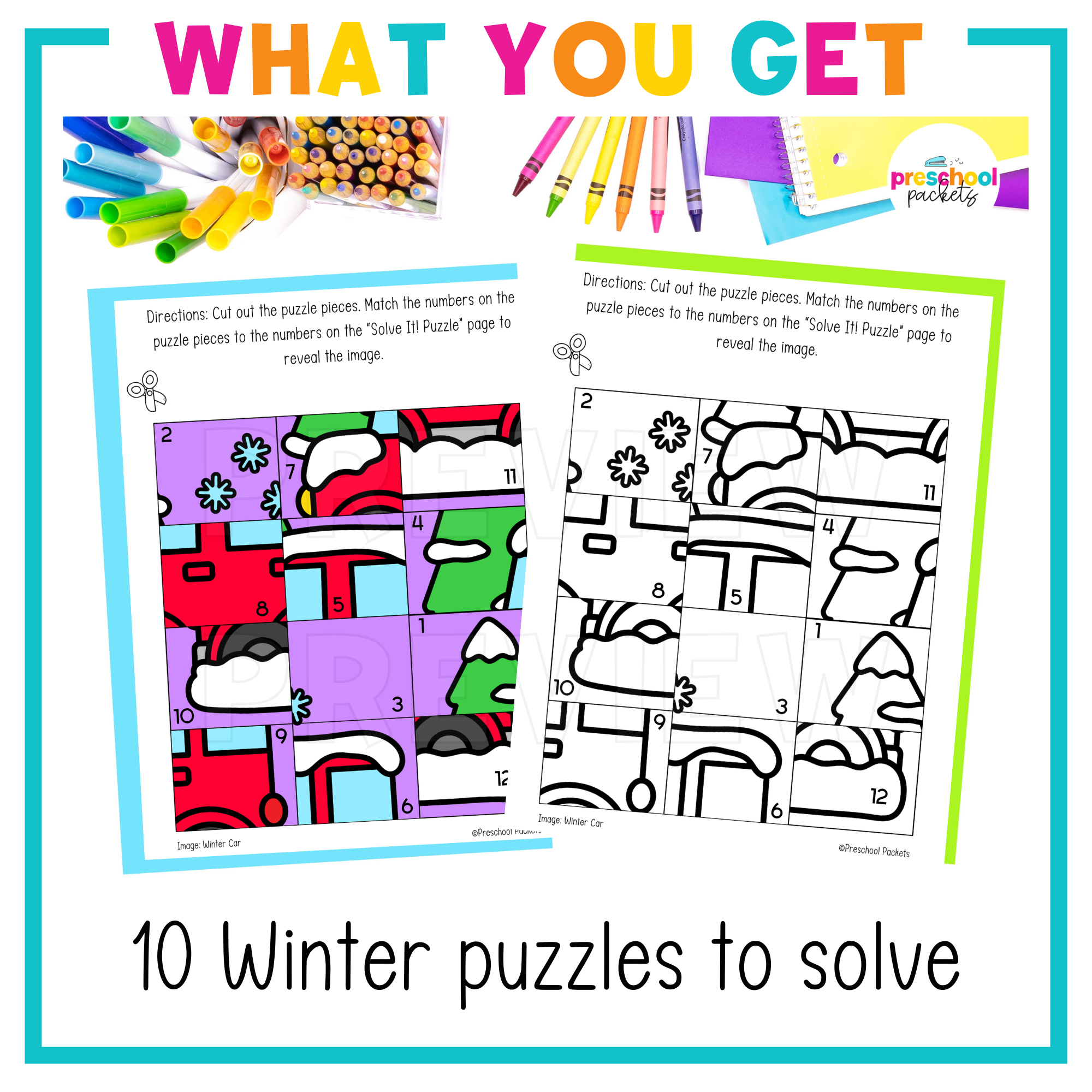 Winter Mixed Grid Puzzles For Preschool, PreK and Kindergarten