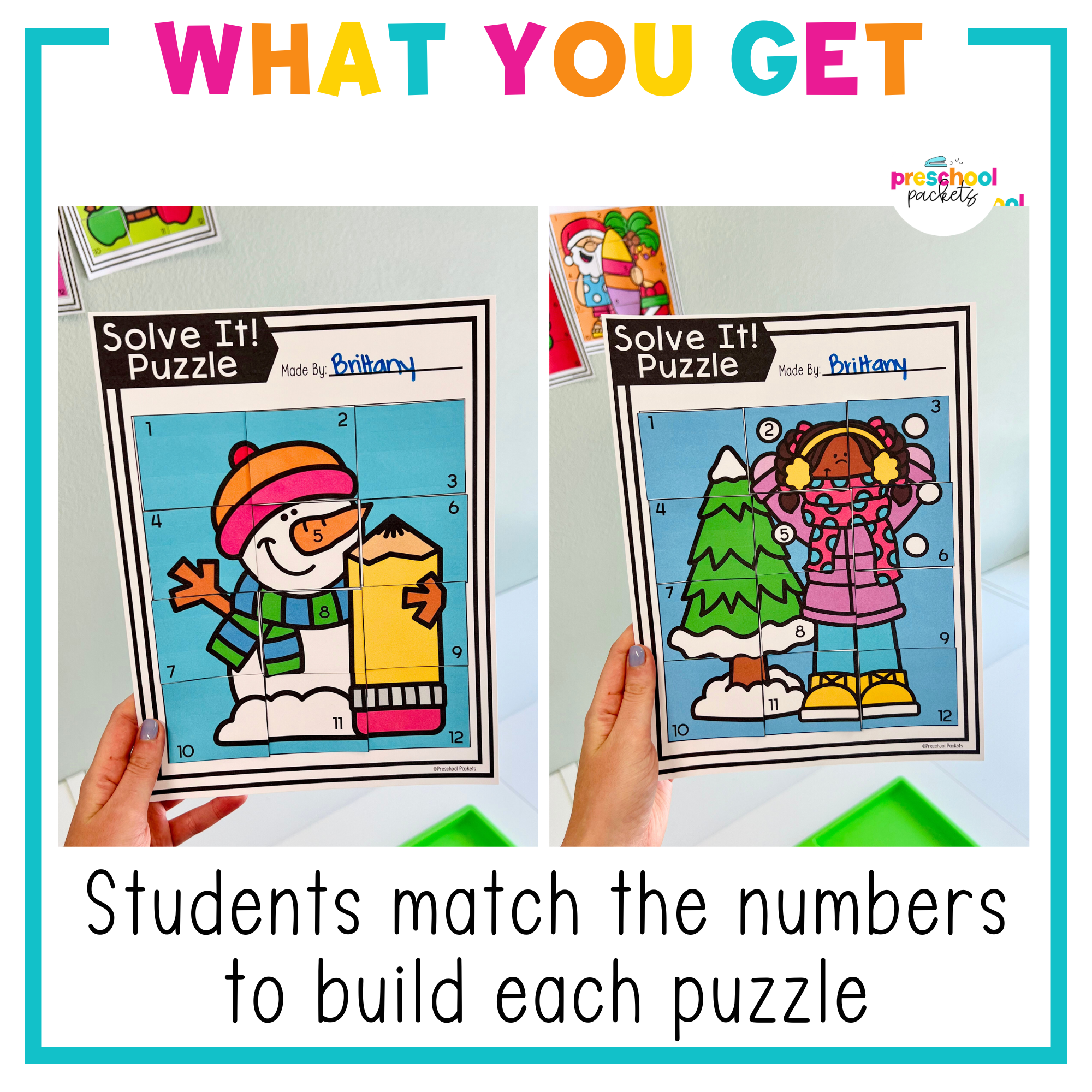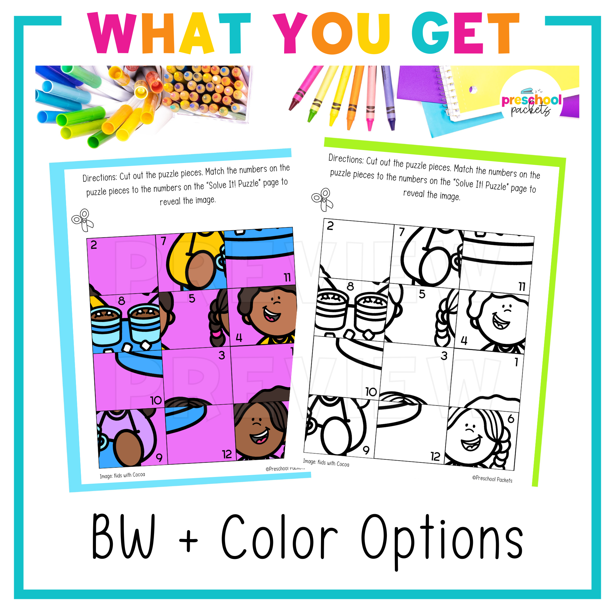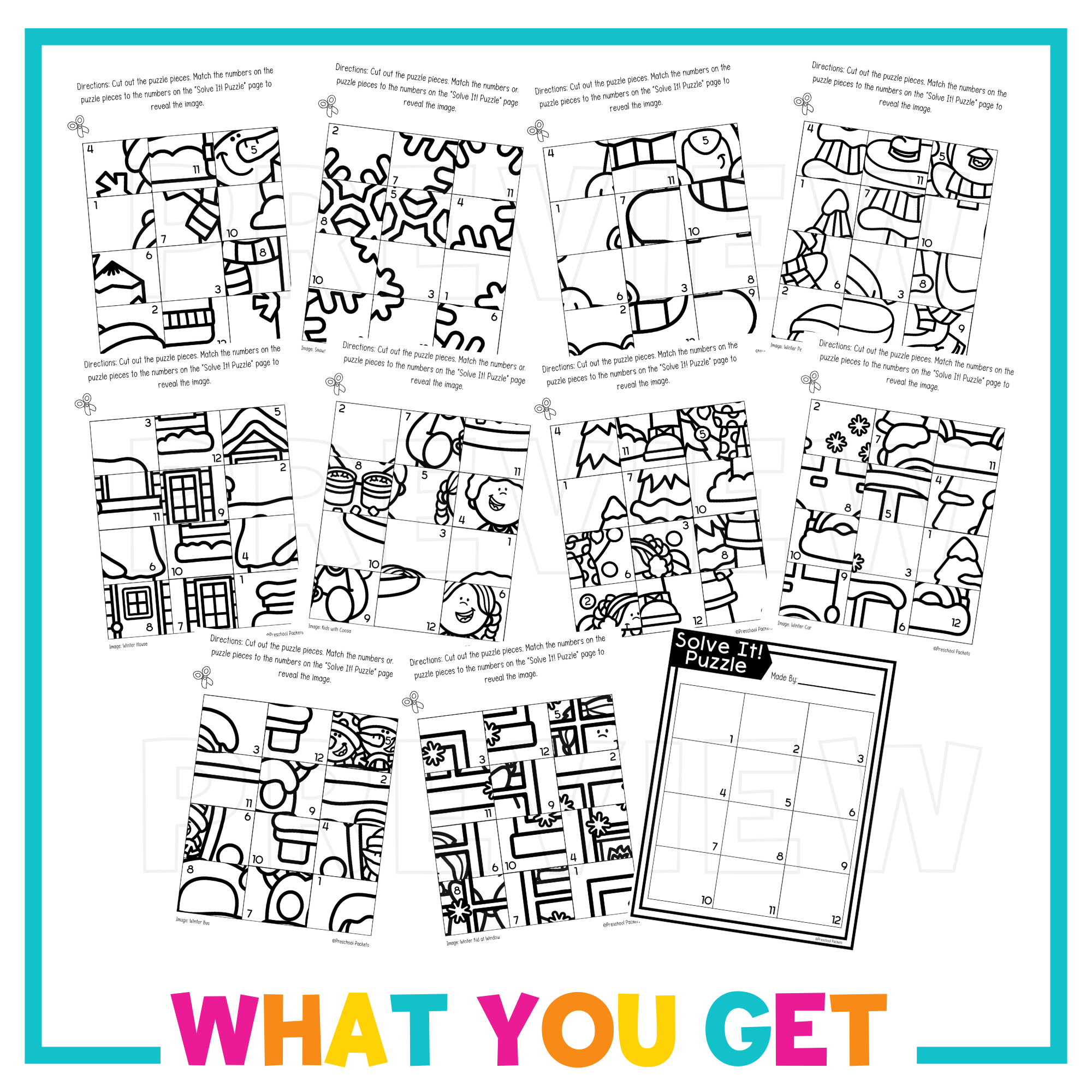 Winter Mixed Grid Puzzles For Preschool, PreK and Kindergarten